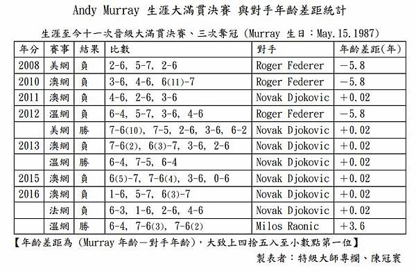 IV. Andy Murray 生涯大滿貫決賽 與對手年齡差距統計: