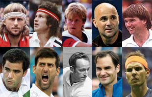 以總數論,Roger Federer 和 Rafael Nadal 以二十座大滿貫並列歷史之最;以單一大滿貫論,Rafael Nadal 以十三座法網冠軍冠絕群倫;以單一大滿貫連霸論,則有 2003~07 Roger Federer 的溫網五連霸、2004~08 Roger Federer 的美網五連霸、Rafael Nadal 的法網五連霸;以連續球王週數論,Roger Federer 的連續 237週 乃前無古人、後無來者的紀錄;以球王週數論,Novak Djokovic 則高居歷史第一。