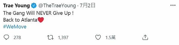 Trae Young 在季後賽期間,用了這句勵志話語在 Twitter 上激勵自己多達四十一次。