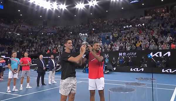 Jan.29th, 男雙決賽迎來澳洲內戰,曾獲得澳網混雙冠軍的 Matthew Ebden 與兩年前獲得澳網男雙亞軍的 Max Purcell 在四強戰甫擊敗第二種子,來勢洶洶。首盤前十局雙方全數保發,未出現任何破發點;第十一局面對 Ebden 的發球局,在經歷了三次 Deuce 之後由 Kyrgios/ Kokkinakis 組合成功破發,隨後第十二局 Kokkinakis 直落四分保發,以 7-5 取得首盤;次盤前六局雙方皆順利保發,Ebden 負責發球的第七局連丟四分遭破發,第八局與第九局雙方保發後,Kyrgios 在第十局發出兩記 Ace、連拿四分,以 6-4 收下次盤勝利,比分定格、比賽結束、Nick Kyrgios 與 Thanasi Kokkinakis 歡喜慶祝。