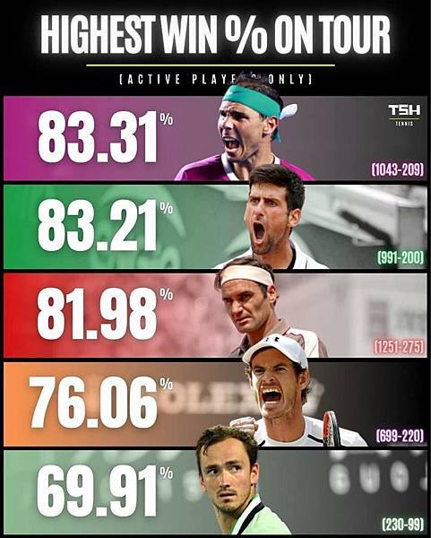 上述理論其實也能推廣到球賽上,因此,我們不會因為 Roger Federer 在 Halle Open 奪冠而大肆慶祝、不會因為 Rafael Nadal 於 Roland-Garros 首輪獲勝就狂歡欣喜、不會因為 Novak Djokovic 在球王寶座上多待一週而感動落淚,反而有種早已習慣、一切都符合預期的無動於衷之感。