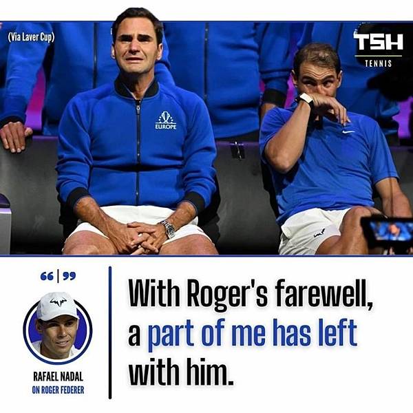 2022 Laver Cup 首日,Roger Federer 與他職業生涯最偉大的對手 Rafael Nadal 合拍出戰雙打;雖兩位奧運前男子雙打金牌出師不利以些微差距落敗,但仍瑕不掩瑜兩人職業生涯最後一次共同出賽的溫馨場面以及亦敵亦友之最佳展現。