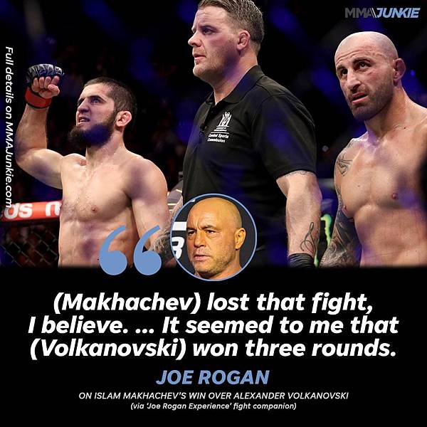 然而,縱使在 significant strikes 方面 Alexander Volkanovski 有三回合多於對手、一回合平手,Islam Makhachev 九度嘗試四度成功 takedown 與長達 7 分 37 秒的 control time 仍成為勝負分水嶺(Alexander Volkanovski 的四次 takedown attempt 均未兌現、control time 則為 2 分 55 秒)。