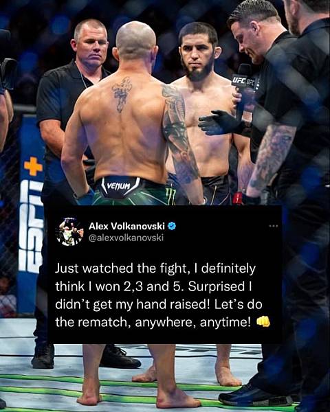 在比賽當晚,盱衡各方賽前預測與選手實際表現,Alexander Volkanovski 無疑是令人驚豔的一方。不僅 total strikes 以 164-95 取得巨幅優勢、significant strikes 亦以 70-57 取得領先、打出了全場唯一的 knockdown,更在 wrestling 方面展現抗衡能力,使 Islam Makhachev 全場沒有任何 submission attempt。