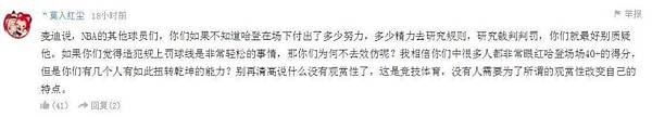 我很喜歡火箭名宿 Tracy McGrady 對於 James Harden 的評價:「NBA 的其他球員們,如果你們不知道 Harden 在場下付出多少努力、時間與精力去研究規則與裁判判罰,那你最好別去質疑他。如果你們認為造犯規、上罰球線是一件非常輕鬆的事情,為什麼你們不去效法呢?我相信你們其中有很多人非常眼紅哈登動輒40+的得分,但是你們有幾個人有如此扭轉乾坤的能力?別再裝清高說些什麼沒觀賞性了。NBA是競技體育,沒有人需要為了所謂的觀賞性來改變自己的特點。」