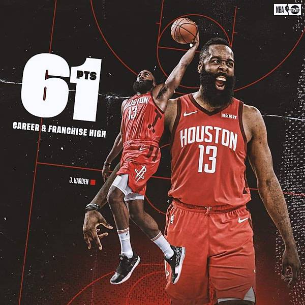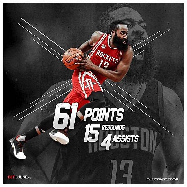 尤其誇張的是,在61分的戰役之前,5場比賽Harden總共砍下261分,統統來自於單打。這一幕,可算是把整個NBA從球迷、球評到球員都給唬住了。