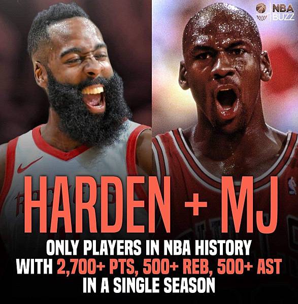 最後,附上Harden本賽季與Jordan生涯得分最高賽季的比較: